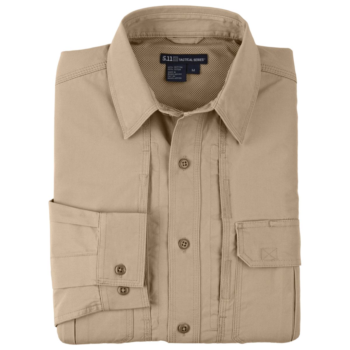 Made from tough 5.4-oz. cotton canvas, the 5.11 Tactical Long Sleeve Shirt is constructed for demanding tactical missions. The 5.11 Tactical L/S Shirt protects while offering functionality through a hidden documents pocket, reinforced pen pockets and cape-back with moisture-wicking mesh.